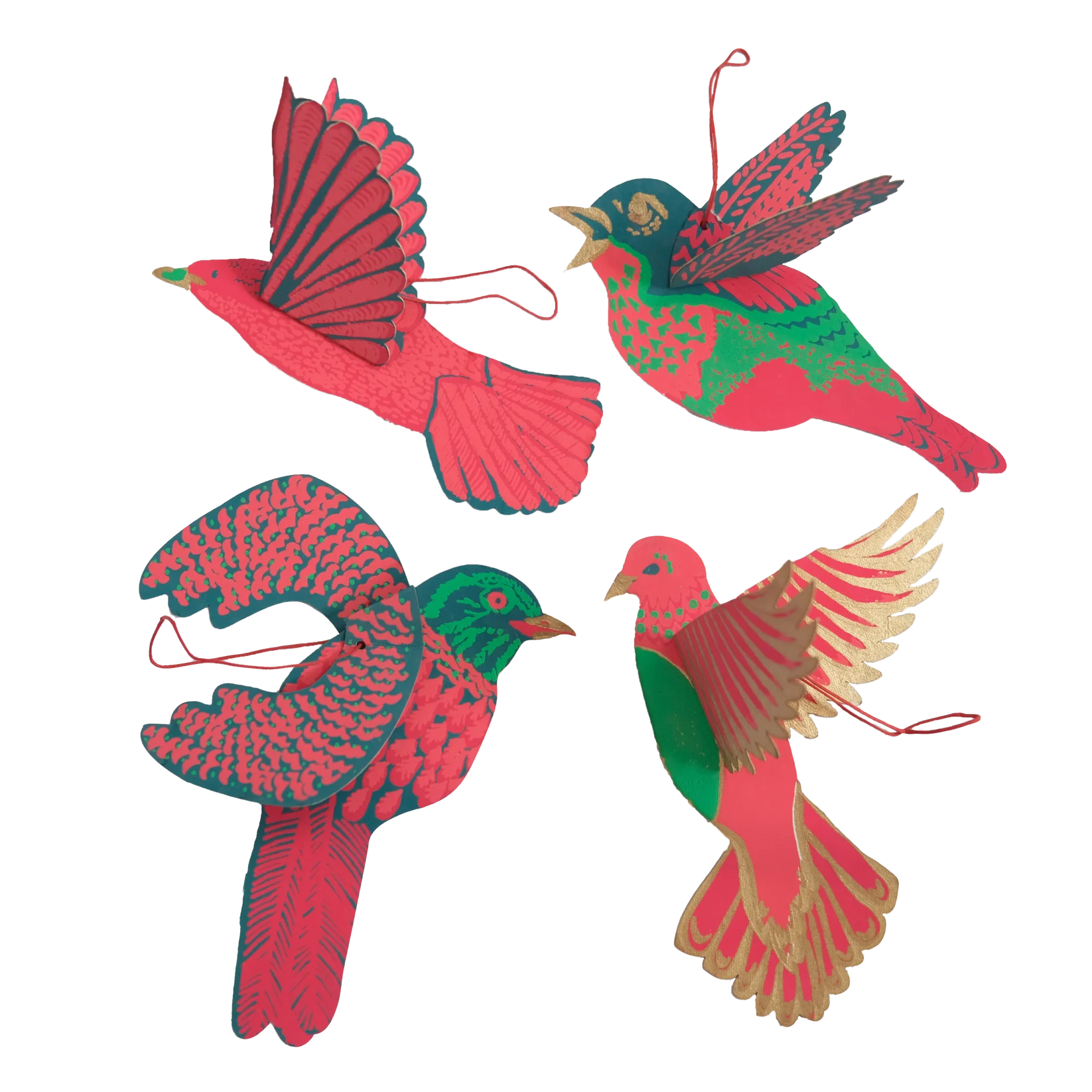 With four dazing, jewel coloured birds, this set of paper decorations is inspired by colourful festive ornaments of years past.